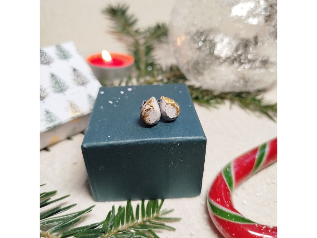 Betonové náušnice - Kapky světlé zlatě zdobené