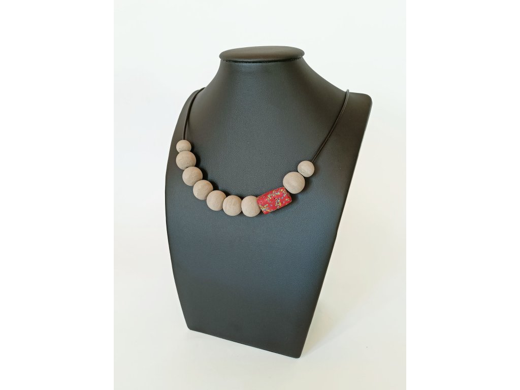 Betonový náhrdelník s červeným africkým korálkem