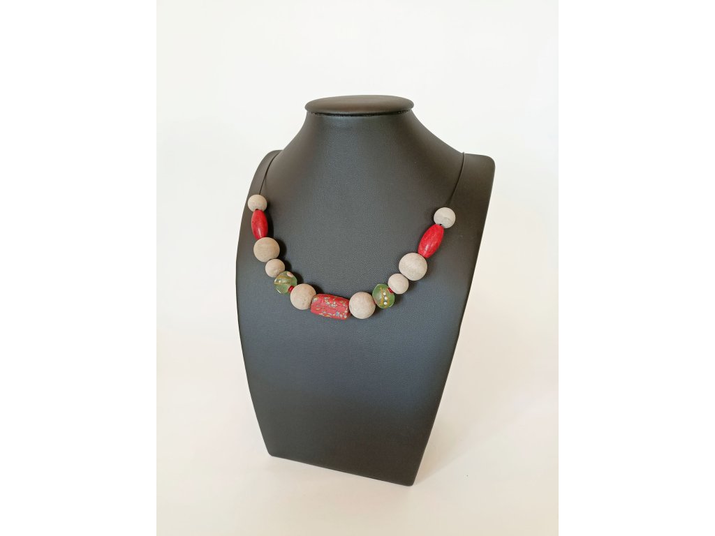 Betonový náhrdelník s korálky KROBO BEADS a korálky z bambusového knotu